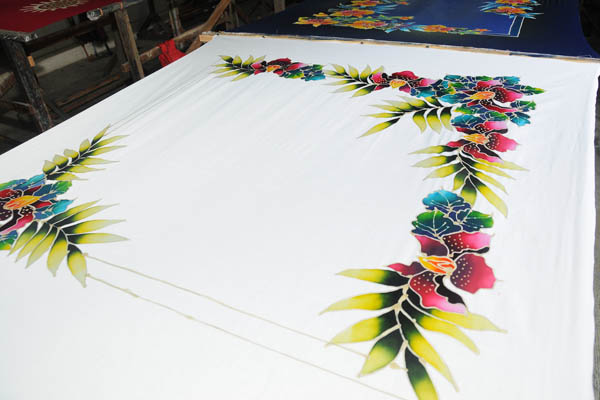 The technique of Handdrawn Batik is similiar to the Hand-blockprinted Batik. While the hand-blockprinted uses blocks to create